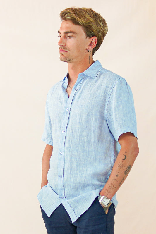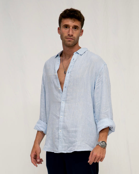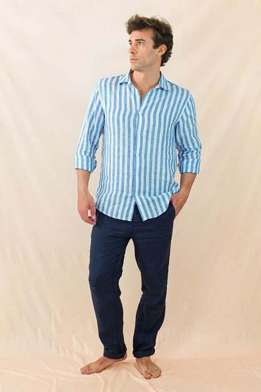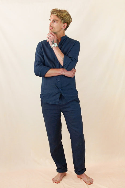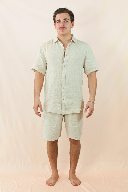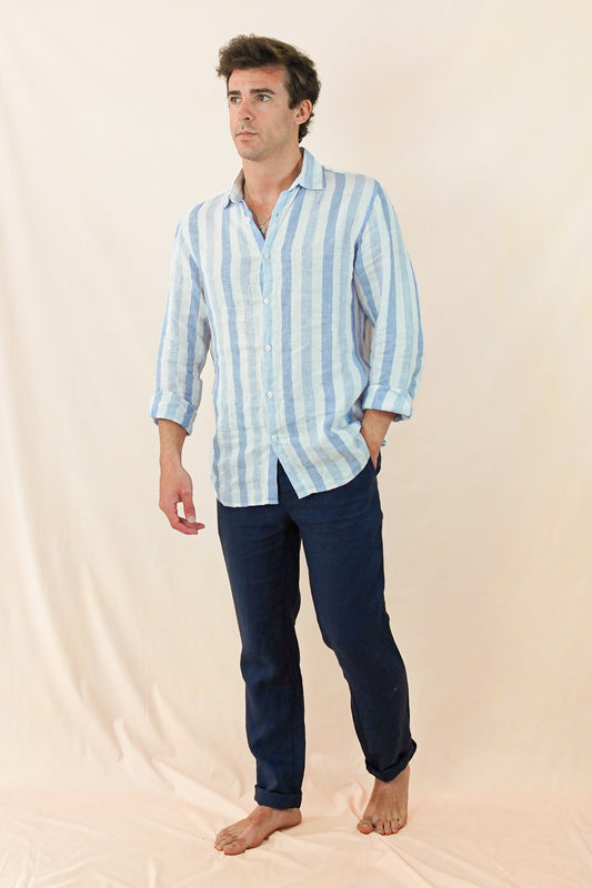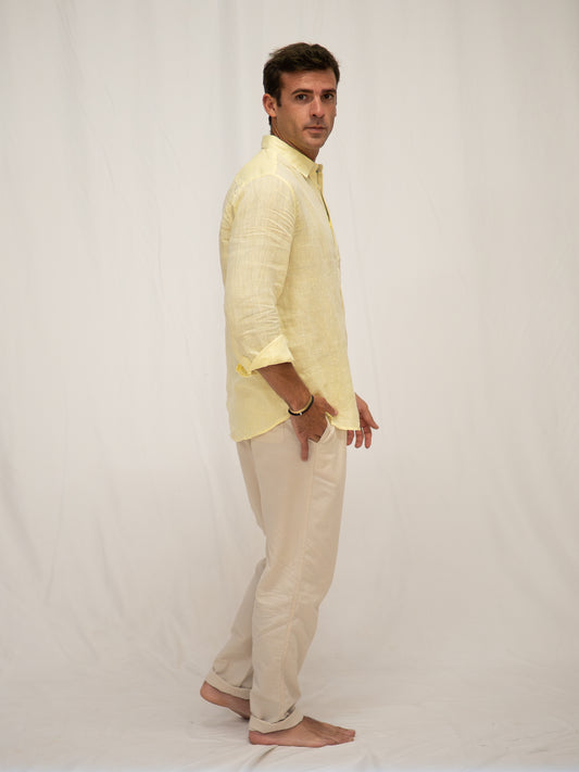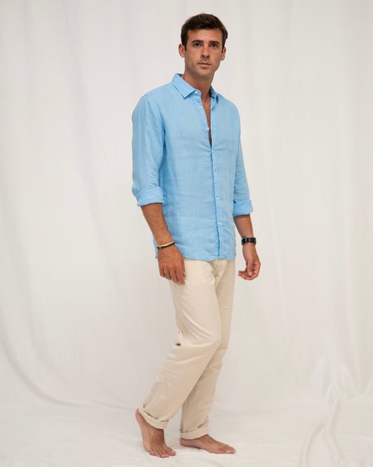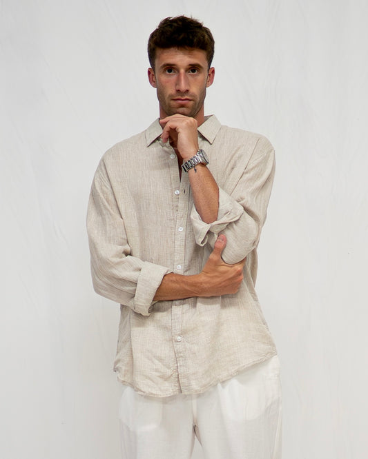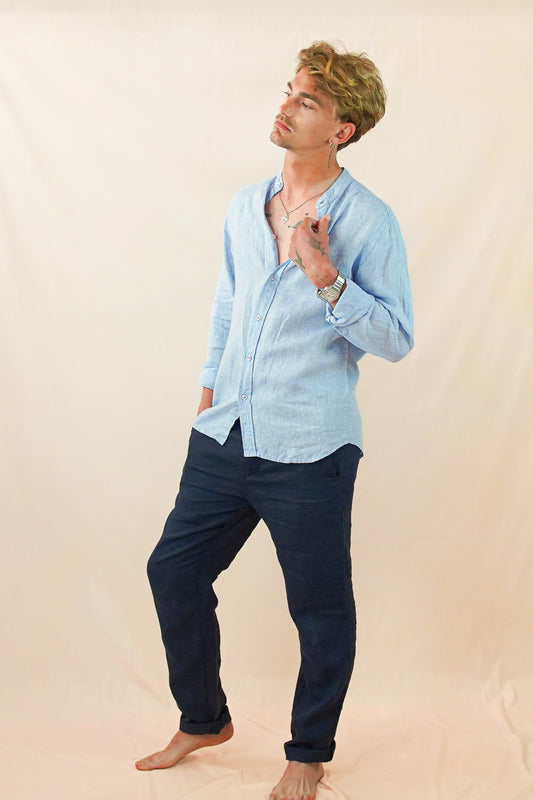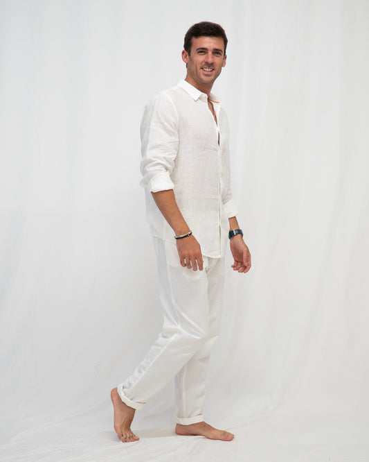 Camisas y pantalones de puro lino, frescos y atemporales, pensados para el hombre que vive el verano con sencillez, estilo y libertad.