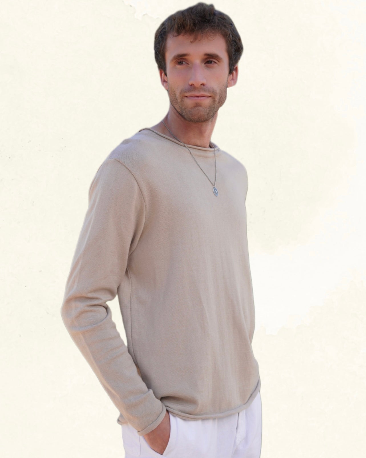 Colección Brisa Mediterránea; Color Tierra; 100% Algodón; Cuello redondo; Disponible en tallas S-3XL; Diseñado y confeccionado en España; Lavar máximo a 30º y planchar a temperatura media (máximo 150º).